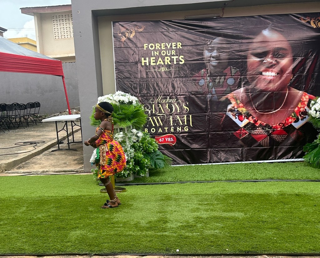 Following the death of a person, a gathering is planned after one week for family members and friends. In our case, we rented a guest house that could host about 200 people in the garden. The place was decorated with posters of my mother and a DJ was hired for the music entertainment. Guests came in and out to sympathise and shake hands. All of us were dressed in traditional funeral clothes: black or black and red. Drinks and snacks were served. It was also at this event that the family had a meeting to decide where and when mum would be buried. The final decision lied with the maternal head of the family who is also a chief. While, my sister and I had preferred a burial in Accra, this was not permissible by the head of the family who to his credit, graciously explained why it’s important for my mother to be buried in her village. My sister and I who had never been to my mum’s village saw wisdom in the Chief’s advice for us to use this unfortunate occurrence to connect with our hometown. As an economist, I also appreciated when he said, the burial of my mum may even encourage us to think about the economic development of the village. He reminded us that we are not from Accra; we are Ashanti people.